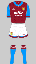 Ollie Whateley, who was Villa’s third England international and a graphic artist by trade claimed to have designed Villa's claret and blue colours but it is unclear whether he was referring to the halved or contrasting sleeve design.