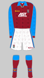 These achievements marked the high point in Villa's career and in 1987, they were relegated to the Second Division. Under Graham Taylor, they bounced straight back and finished as runners-up in 1990. Two years later they became founder members of the Premier League, wearing a striking strip inspired by the iconic hoop-neck jerseys first seen in 1890 and bearing a rather more traditional crest.