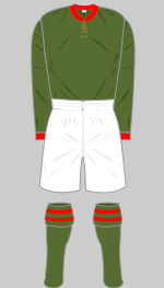In 1901, the club was reformed, adopting dark green and white colours that earned them the nickname of "The Ivies." According to the club's official historian, Chas Sumner, these colours were worn in various combinations including plain green shirts, stripes and halves but I have only been able to corroborate the 1906-10 period. A press item from November 1906 confirms that the team wore "new olive green jerseys with red collars" against Wrexham.