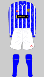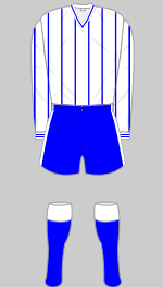 When the Football League resumed after the war in 1946-47, the club could not source their traditional striped shirts due to clothes rationing and had to play in plain white shirts. A set of pre-war striped tops that were "much the worse for wear" were kept as a stand by in case of a clash of colours.