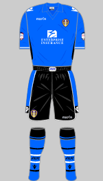 Macron's recent designs for Leeds have been admirably restrained but the new home kit gives the impression that they are now trying just a bit too hard to be innovative. There is too much detailing and the shirt is curiously cut at the side to form a sort of apron at the lower hem. Although this can't be seen on our graphic, it is reproduced on the shorts and puts me in mind of a dinner-lady's tabard.