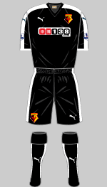 Watford are back in the Premier League after finishing as runners-up in the Championship last season. Their new first kit features Puma's latest design gimmick, graduated bands which are turning up in a variety of unpleasant ways this season.