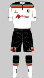 Glenavon won the Irish Cup for the sixth time last season, their first senior honour since 1997 (their previous cup win). Unfortunately they were knocked out of the Europa league by FH of Iceland in the first qualifying round. Their strips appear to be unchanged.