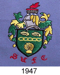 The first time that the club is recorded as wearing a crest was for the 1947-48 season, when the coat of arms of the Borough of Scunthorpe appeared. Worn on a light blue patch, the five chain links are a play on words on the abbreviation for Lincolnshire (Lincs - geddit?) and represent the five villages that were combined to form the borough in 1936. The wheat sheaf symbolises the agricultural origins of those villages and the two shells above the chain are Gryphaea, a fossil bivalve common in the local ironstone. The whole heraldic effort is surmounted by a blast furnace.