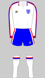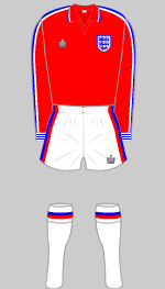 England failed to reach the finals of the 1976 European Championship and the World Cup of 1978 while wearing ths outfit but they did qualify for the 1980 European Championship. The white kit was worn for the last time against Spain on 26 March 1980 but the red change kit was retained until its last outing in May 1981 when Brazil were the visitors at Wembley.